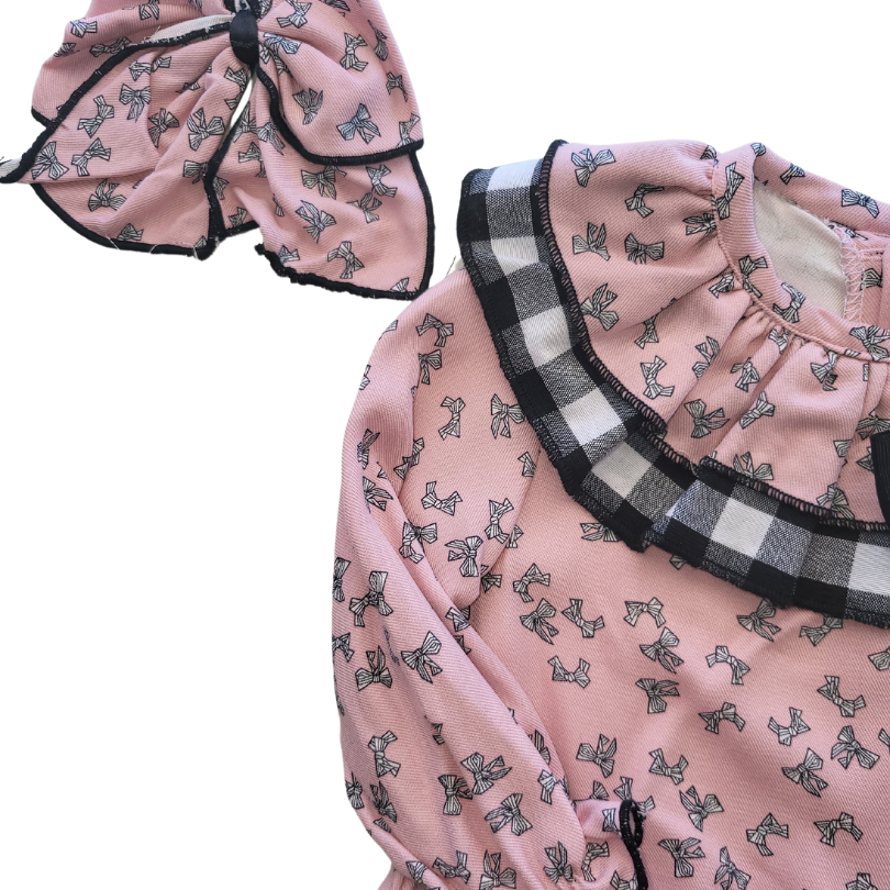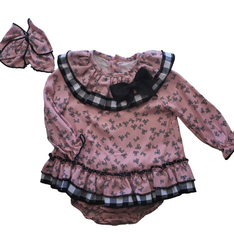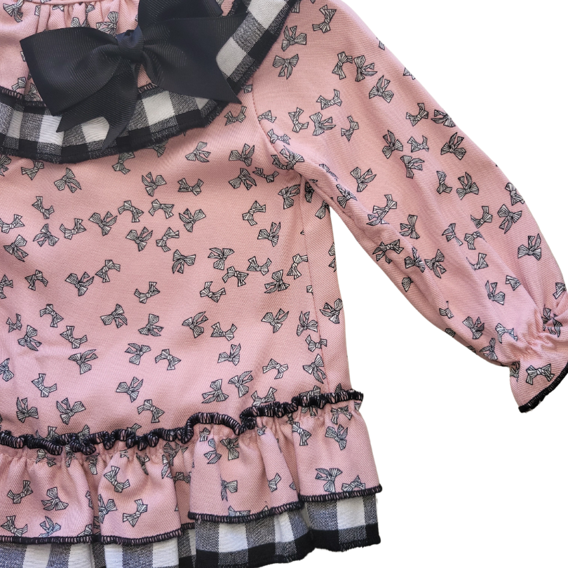 Vestido rosa combinado con negro, lazada y braguita del mismo tejido