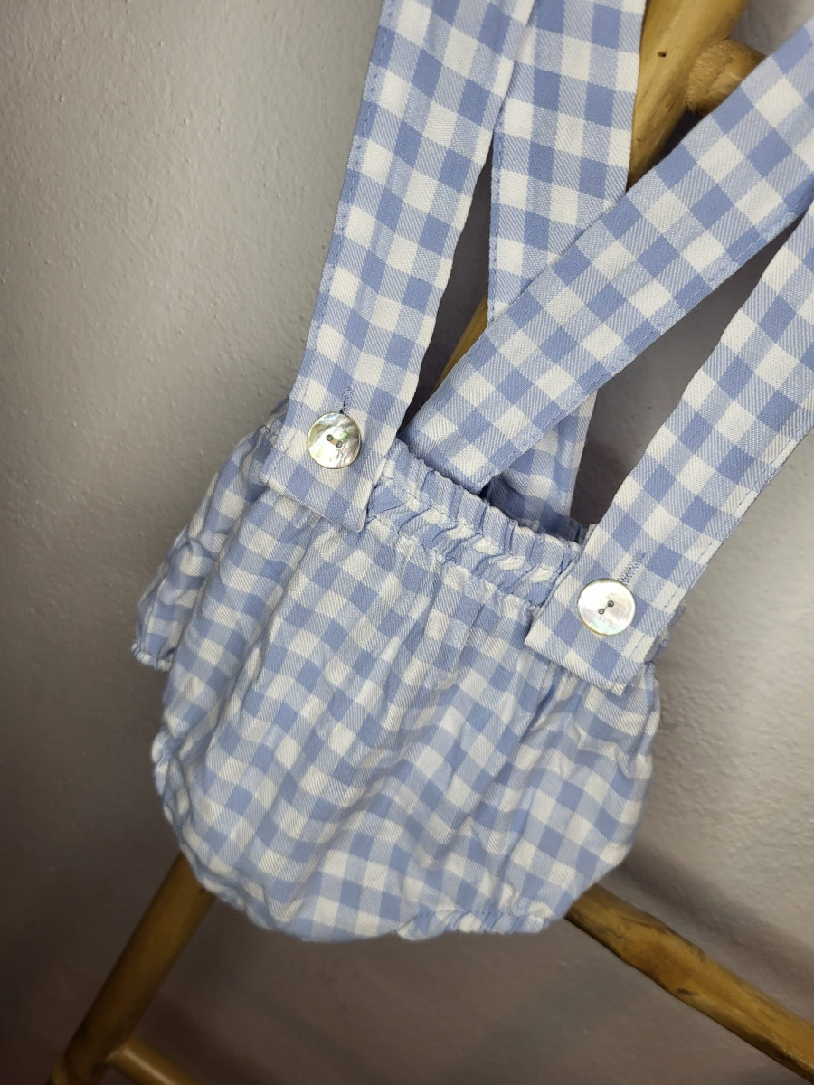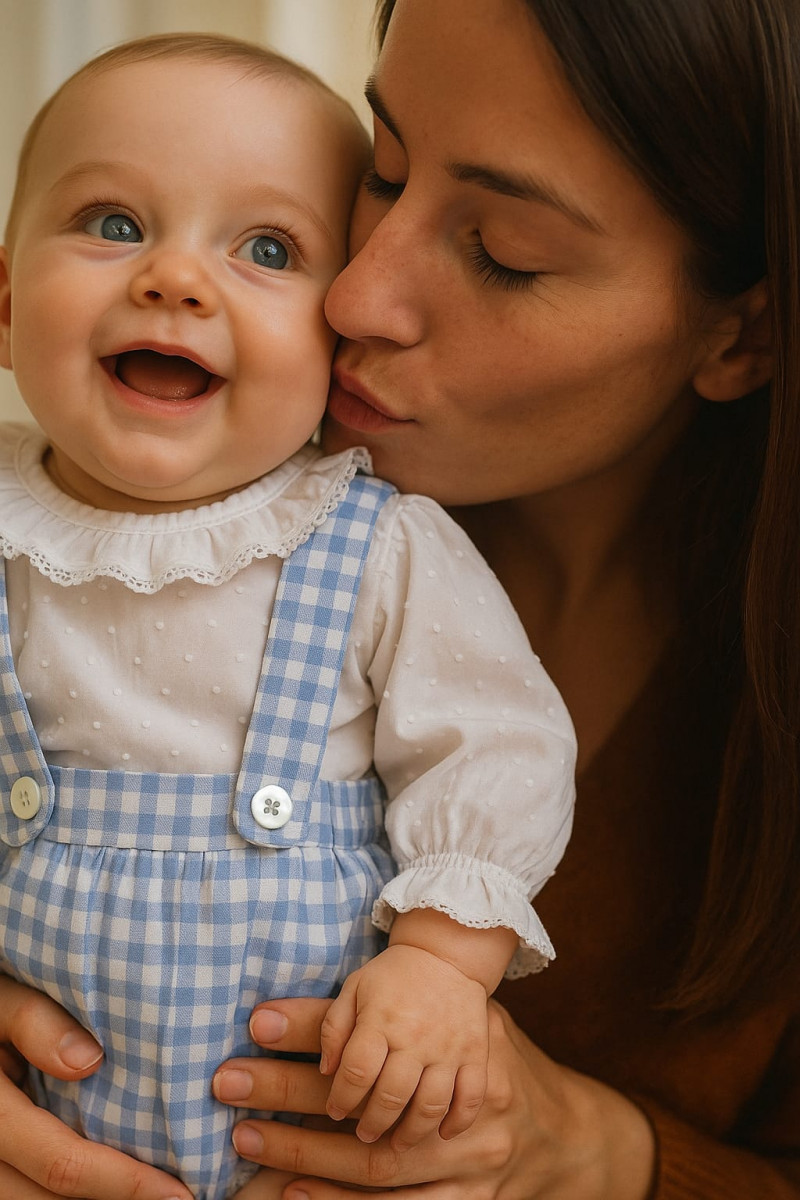 Nuestra ranita bebé vichy en celeste y blanca estampada es la prenda perfecta para vestir a tu peque con dulzura y comodidad. Confeccionada en tejido suave y ligero, resulta ideal tanto para el día a día como para ocasiones especiales.