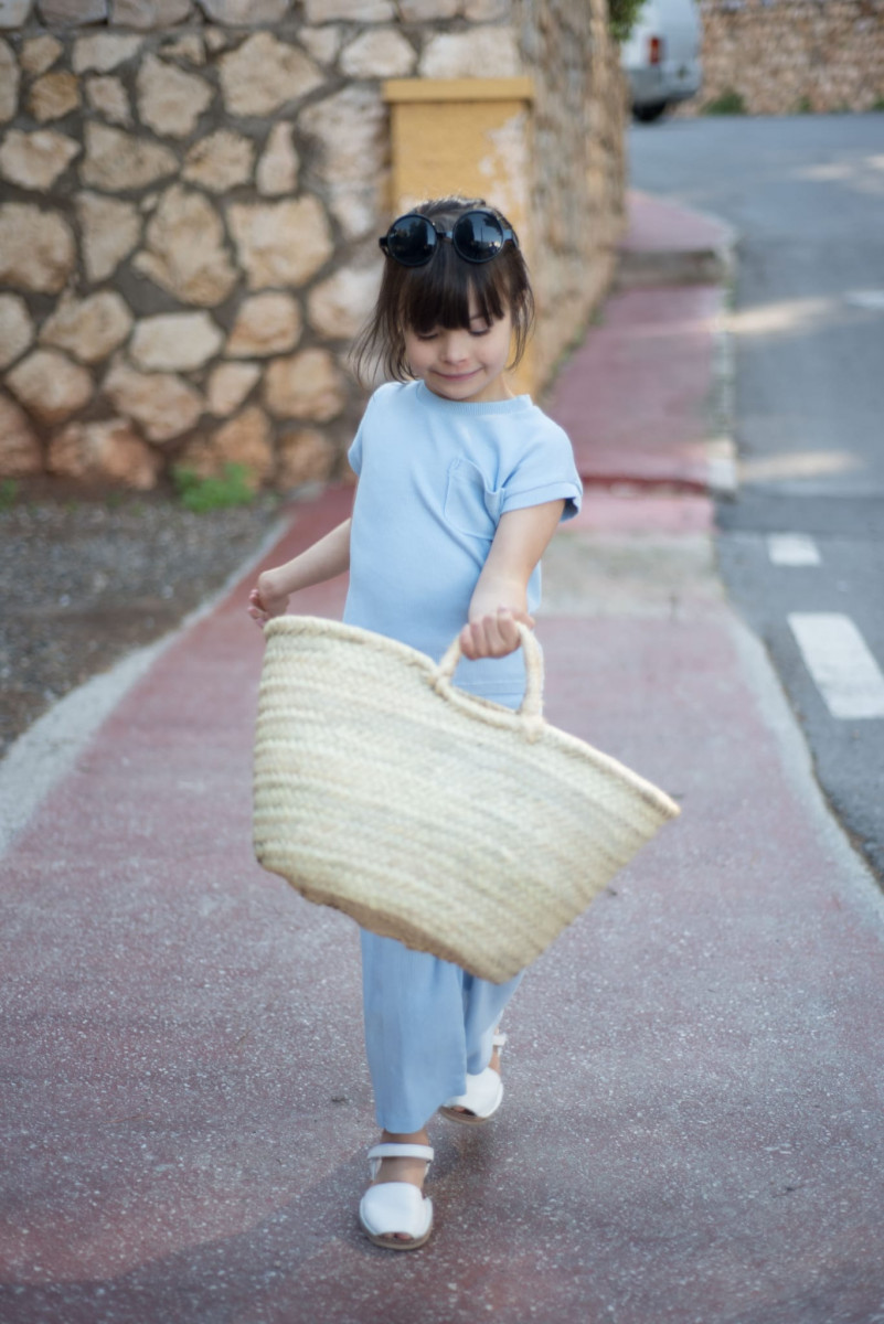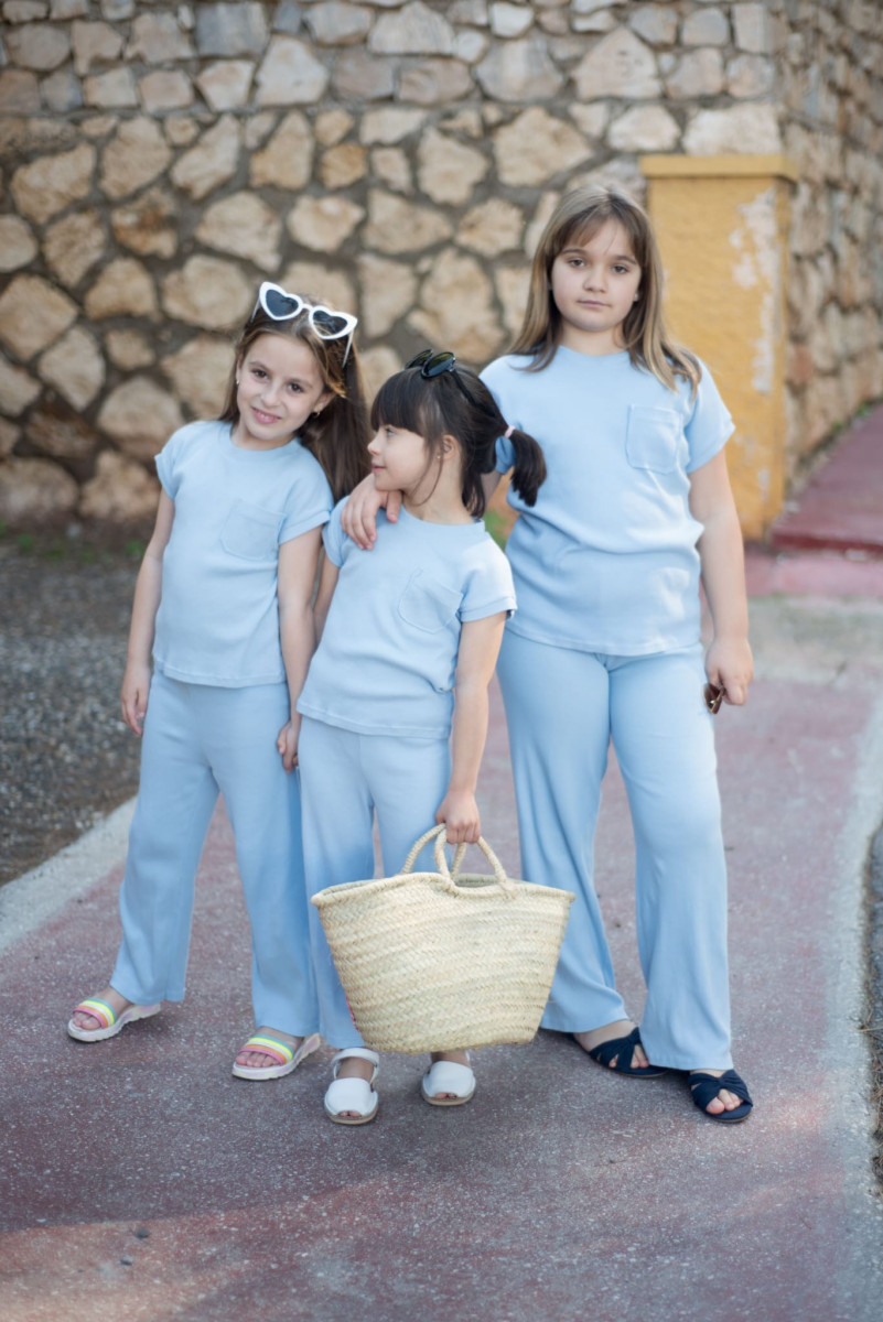 El pantalón largo recto es otro elemento destacado de este conjunto. Confeccionado con un suave y elástico material, garantiza libertad de movimiento y confort durante todo el día. El pantalón cuenta con un elástico en la cintura para un ajuste perfecto y práctico, ideal para las niñas en constante movimiento.